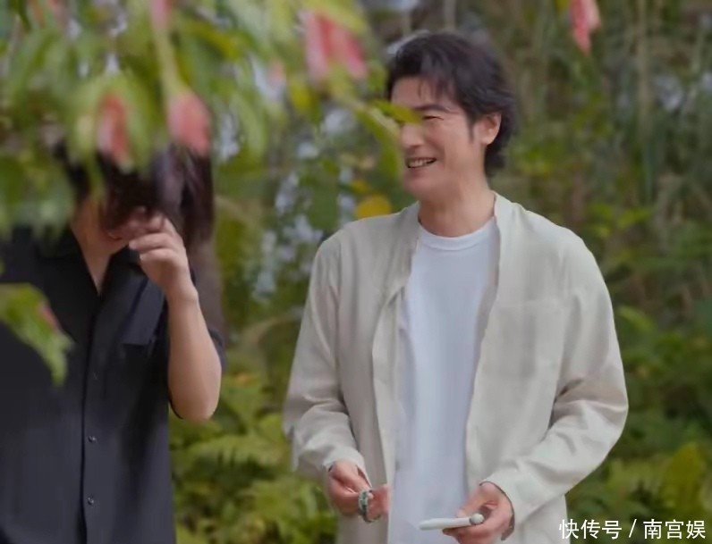从生图照片来看,金城武白色衬衣和外套,头发微卷,且带有一丝明显的白发,如同一位老农民一般行走在田间小道上,时而在林间骑着自行车,时而又在庭院玩弄花草。